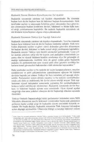 tadadır. Bir başka deyişle, başkanlık sisteminin Tük Anayasa Geleneğine