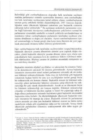 mutlaka parlam€nıer sistemle uyumsuzdur denemez; ama cumtıurbaşka-