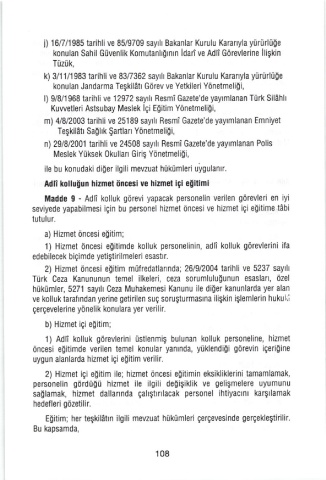 Madde 9 - Adli kolluk görevi yapacak personelin verilen görevleri en iyi