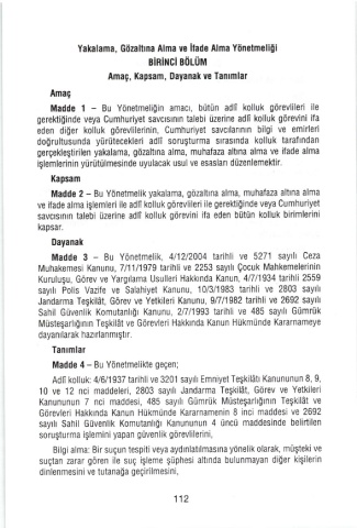 Yaİalama, Gözaltlna ılma Ye lİaıte Alma Yöneımeliğl