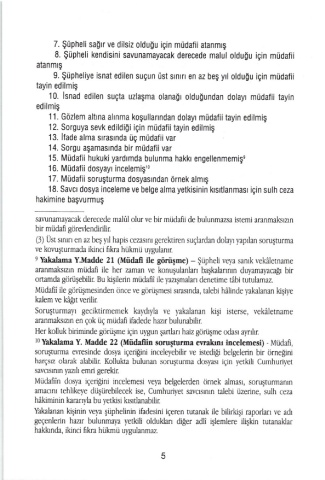 9. Şüpheliye isnat edilen suçun üst slnln en az beş yll olduğu için müdafii