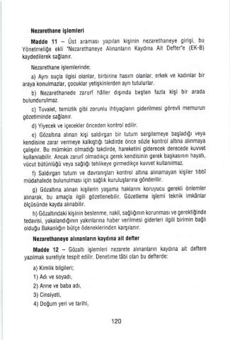 ]üıaddo 12 - Gözattl işlemleri nezarete allnanlann kayd|na ail dettere