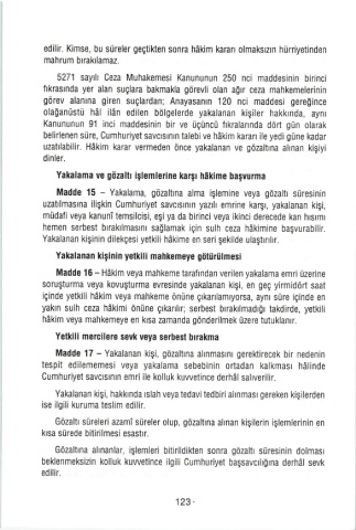 Madde 17 - Yakalanan kişi, gözaltlna allnmasınl gerektirecek bir nedenin