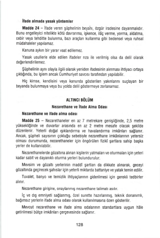 Nezarethanelerde gözaltlna allnan kişilerjn yalmalan Ve oturmalarl için yeteri