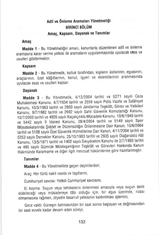 Madde 2 - Bu Yönetmelik, kolluk taratndan, kişilerin üstlerinin, eşyasInln,
