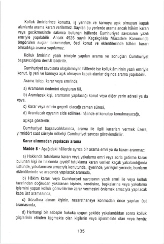 emriyle yapllabilir. Ancak 4926 §aylll Kaçakçllıkla Mücadele Kanununda