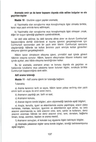 ı adde 10 - Usulüne uygun yapllan aramada;