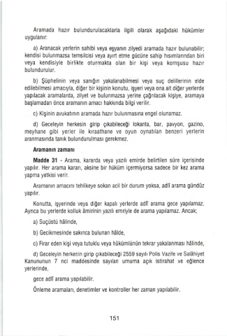 Aramanln amac|nı lehlikeye sokan acil bir durum yoksa, adli arama gündüz
