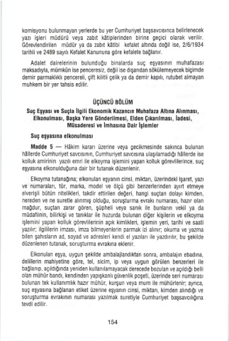 suç Eşyasl ve suçıa llgılı Ekonomiİ [aıancln tttuhaİaza Alllna AlInmasl,