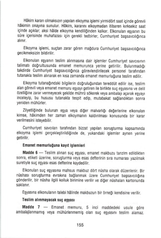 Madde 6 - Teslim alınan suç eşyasl, emanet makbuzu tanzim edildikten