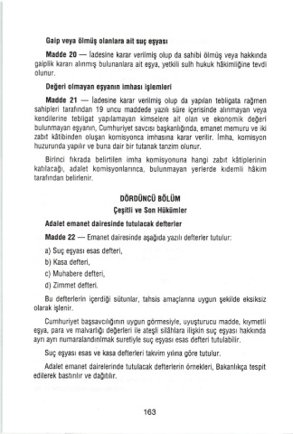 eşya,  para  Ve malvarllğl  değerleri  ile ateşli  silahlan  Ilişkin  suç  eşyasl  hakklnda