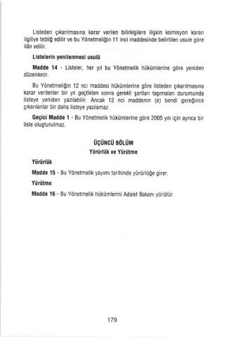 Madd€ 14 - Listeler, her yll bu Yöneİmelik hükümlerine göre yeniden