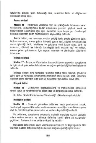 kanun, tü2ük Ve yönetmeIikler ile diğer kitap Ve dergiIerin işlendiği detterdir.