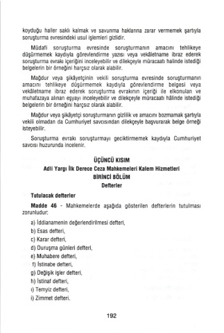iladdO 46 - Mahkemelerde aşağlda gösterilen detterlerin tutulmasl