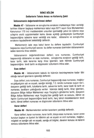 Mahkemenin  iade  Veya  kabul karan bu deftere  kaydedilir.  cumhuriyet