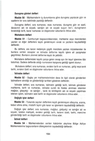 İladde  50  -  Mahkemelerin  iş durumlanna  göre  duruşma  yapllacak gün  Ve