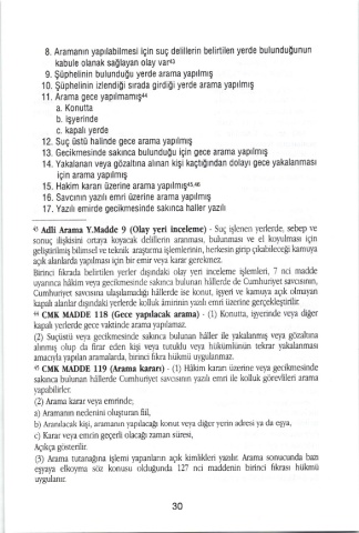 8. Aramanın yapllabilmesi için suç delillerin belirtilen yerde bulunduğunun