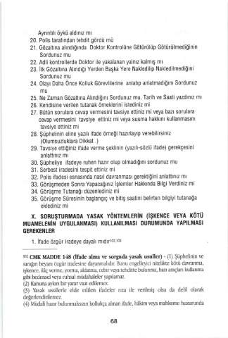 ı02 cMK MADDE l48 (İhde alma ve soıgrııla yasak usulleı), (1) Şüphelinin ve