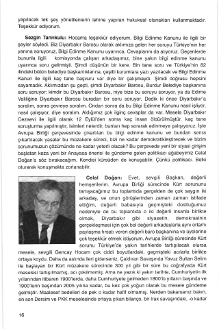 şeyler söyledi. Biz Diyarbakır Barosu olarak aklımıza gelen her soruyu Türkiye'nin her
