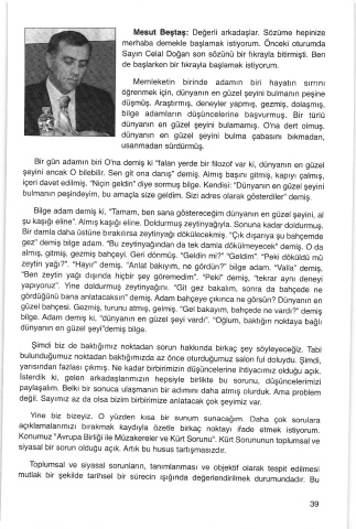 Sayın Celal Doğan son sözünü bir fıkrayla bitirmişti, Ben