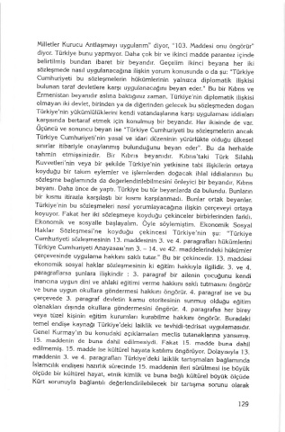 Oçüncü ve sonuncu beyan ise .'Türkiye cumhurjyeti bu sözleşmelerin ancak