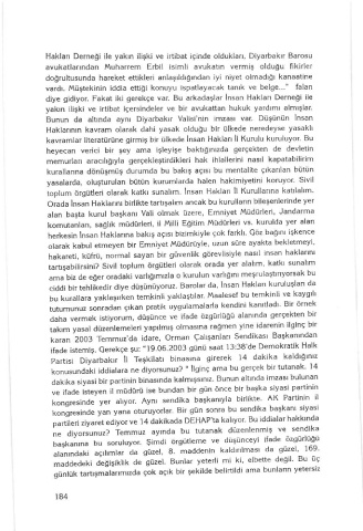 Haklan Deıneği ile yakın ilişki ve jrtibat içinde olduklan, Diyalbaklr Barosu