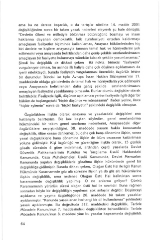 amaçlayan faaliyetini yasaklanmüş olmasıdıı Bunlar olumlu değişikler oIarak