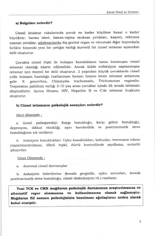 düşündürür. Ayrıca Herpes, HIV, Hepatitis B ve Cde istismar kuşkusu