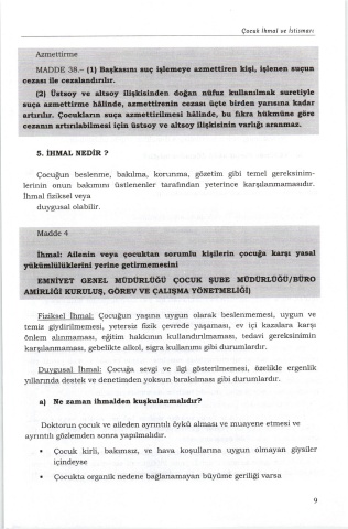 İhmaı: Ailenin veya çocuktan sorumlu kişilerin çocuğa karşı yasd