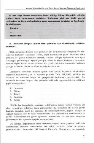 2. Korunma ihtiyacı içinde olan çocuklar için alınabilecek tedbirler