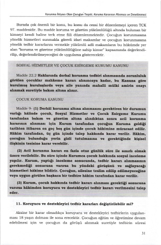 Korunma lhtiyacı Olan ÇocuğunTespiti, Koruma Kararının Alınması ue Denetlenmesi