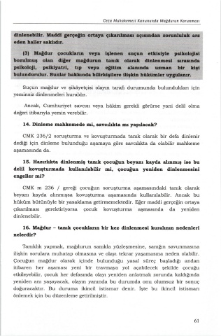 CMK m 236 l gereği çocuğun soruşturma aşamasındaki tanık olarak