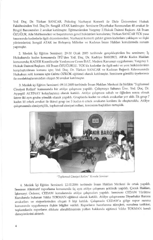 Fakültesinden Yrd. Doç.Dr. songü ATAK kahlmışhİ. seminere Diyarbal«r Barosundan 40 al,ukat ile