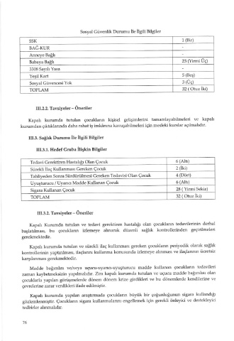 Kapalı kurumda yaP an ara§hrmada çoarkların büyük bir çoğunluğunun sigara kııllandrğt