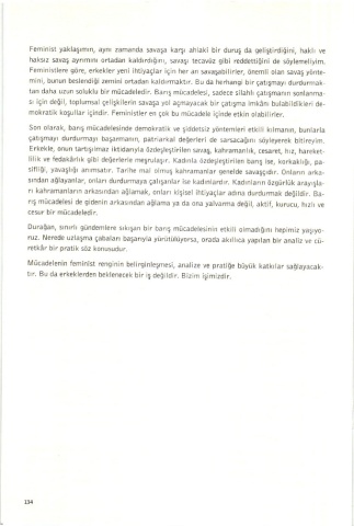 Feminist yaklaşlmln, aynl zamanda sava9a kaİşl ahlaki b'r duİuş da geliştirdığini, hakll ve