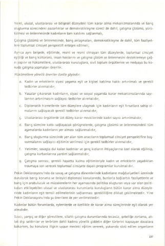 Pekin Deİlarasyon!'nda da savaş ve çatlşma dönemlerinde kadlnlann mağduriyetleri üzerinde