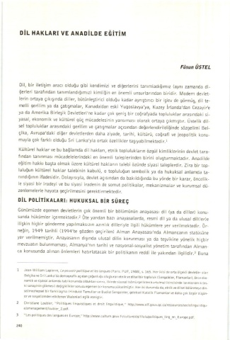 Kültüİel haklal ve bu bağlamda dil haklarl, etnik topluluklann öz9ül kimljklerinifl devlet tara_