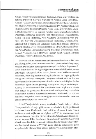 olalak sade bir dille ve azın]ık haklan standatları ile diğer stan-