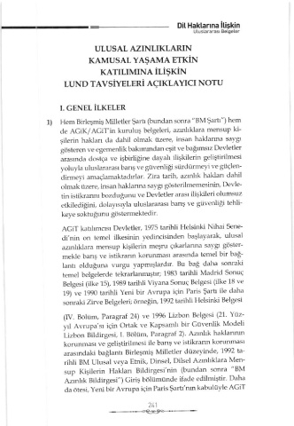Azınlık Bildngesi") Giriş blümünde ifade edilmiştiı, Daha