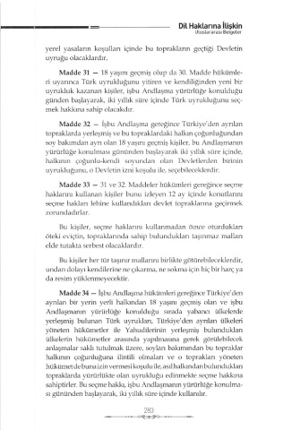 Madde 32 - İşbu Andlaşma geıeğince Türkiye'den ayrülan