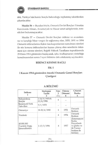 Madde 56 - Bundan k yle, osmanlı Devlet Boİçları Yönetim