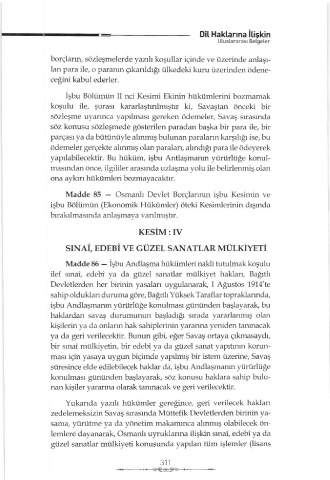 Madde 85 - Osmarılı Devlet Borçlanrıın işbu Kesimin ve