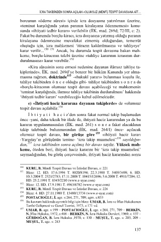 153 KURU, B. Menfi Tespit Davası ve Ġstirdat Davası, s: 226