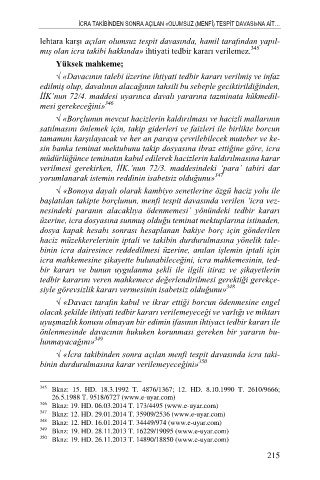 mış olan icra takibi hakkında» ihtiyati tedbir kararı verilemez. 345
