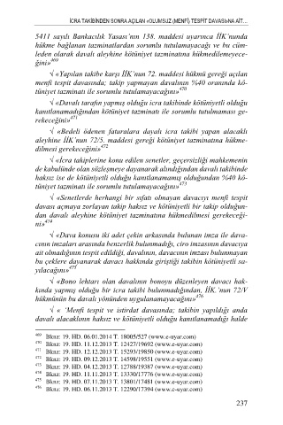 √ «Yapılan takibe karşı İİK‟nun 72. maddesi hükmü gereği açılan