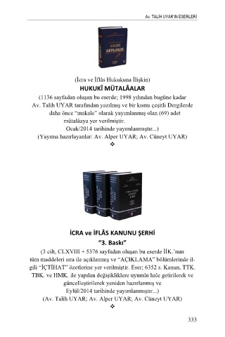 Av. Talih UYAR tarafından yazılmıĢ ve bir kısmı çeĢitli Dergilerde