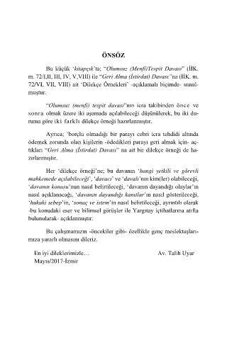 Bu küçük „kitapçık‟ta; “Olumsuz (Menfi)Tespit Davası” (ĠĠK.