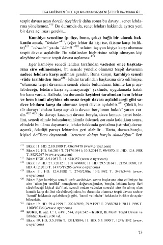 rına ciro edilmemiĢse, bu senede yönelik olumsuz tespit davasının