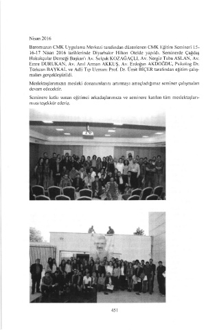 l6-17 Nisan 20l6 tarihlerinde Diyarbakır Hilton Otelde yapıldı. Seminerde Çağdaş