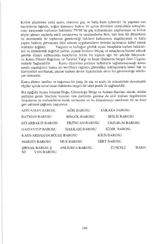 Biz aşağıda imzası bulunan Doğu, Güneydoğu Bölge ve Ankara Baroları olarak, iktidar